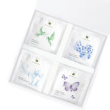 This assortment box contains 12 compostable teabags each of: English Breakfast, Imperial Earl Grey, Purely Peppermint, Floral Jasmine