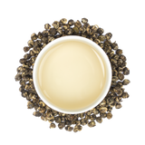 Jasmine blossoms are picked during the heat of the day, when the flowers are closed tight. The scenting is done in the cool of the evening when the blossoms open, releasing their intoxicating scent. The blossoms are heaped in piles next to the drying tealeaves, which absorb the fragrance of the jasmine. This process is repeated up to seven times for the most prized jasmine teas such as this Organic Jasmine Pearl. It is important to use fresh, cold water (use reverse osmosis, low mineral water) that has a high oxygen content with white teas - particularly teas of single estate varietal. Best drunk in the morning, when your palate is fresh.